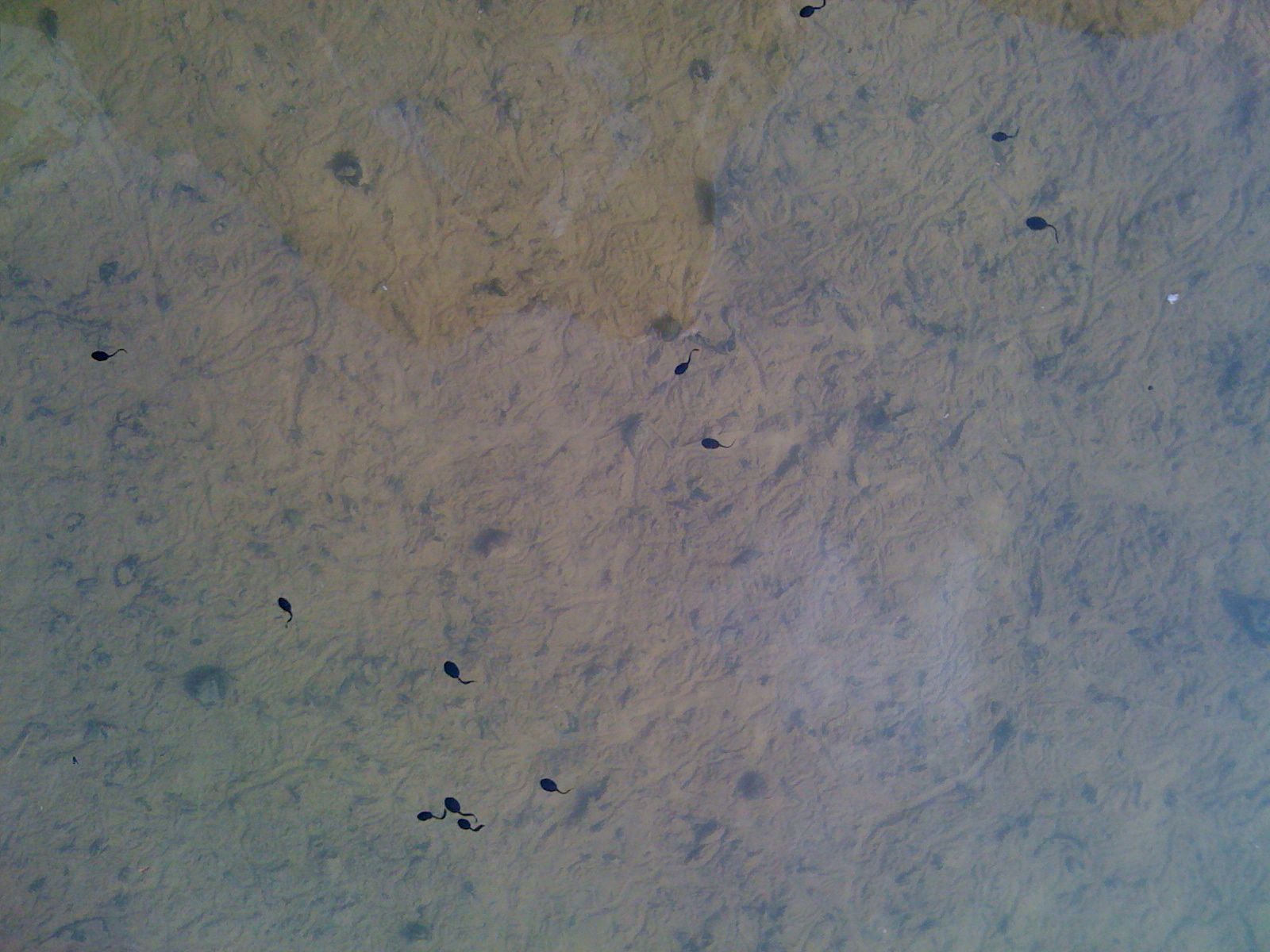 Strange tadpoles in the pond. In the bottom picture, eating bread someone has thrown in the pond. It's worth clicking to see the larger versions! Tadpole sandwich, anyone?